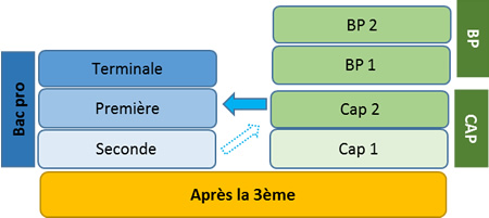 Suivant les métiers, il est possible de continuer en BAC PRO ou Brevet Professionnel. Ce sont 2 diplômes de même niveau (niveau IV).